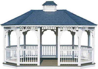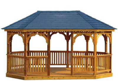 Pavillon PVO-300-MT "Gorgia" behandelt und Weiß lasiert komplett mit schwarz/grauen Bitumenschindeln.