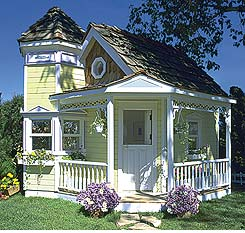 Gardencottage inWhite / Yellowwith tower,asphalt shingleroofing(brown) andbottom plate. The windows aremade of white plastic. The entrance door isnatural lockable andalsofromplasticwith a glass cut.The house consistsinternallyof a large roomthat can bereadilyequipwith asleeping loft. The wallsarewoodframe construction, the exterior iscovered with wood.